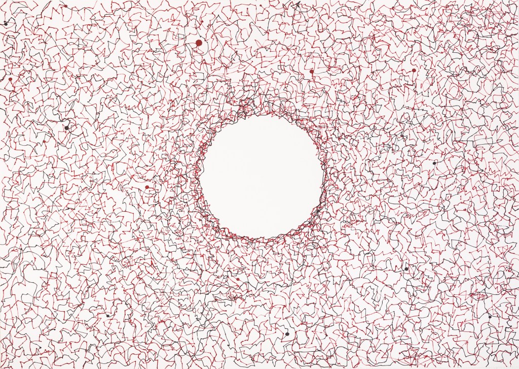 I work principally in drawing, printing and painting on paper, aluminium, perspex and board with dimensions ranging from postcard-size to 10 metre long installations.
